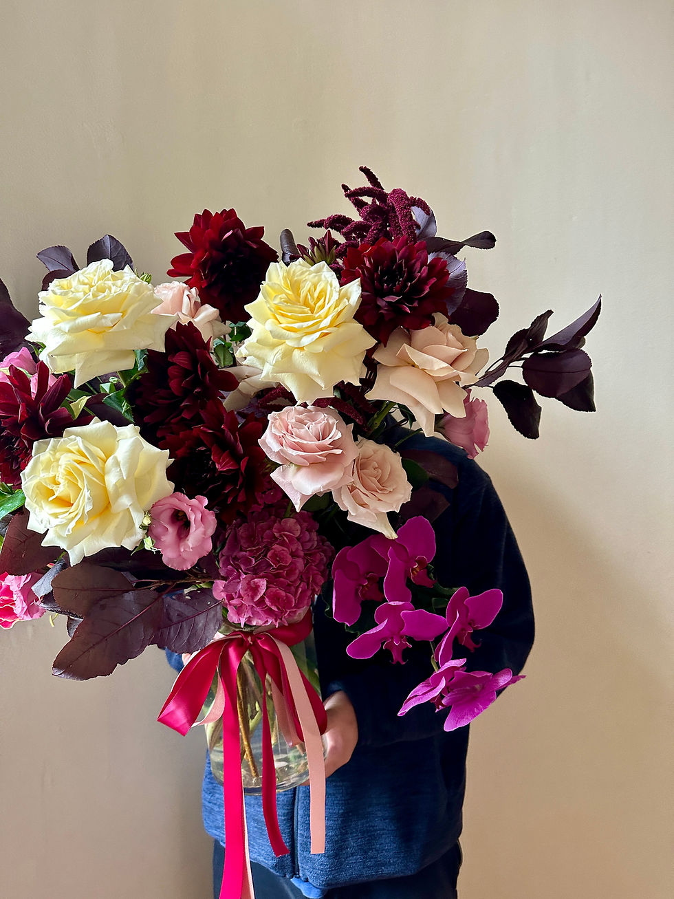 Send some brightness to a friend or family, something thoughtful to say I'm thinking of you. Our fresh flower bouquets are a beautiful selection of the best seasonal florals. Our studio is owner operated and the florist who arranges the bouquet also write the card so they will be aware of what the occasion the bouquet is for. Flower bouquets delivered to the north shore and northern beaches area gift wrapped in our premium wrapping paper and ribbon. Florals can be presented in a vase with extra foliage (addition cost).
